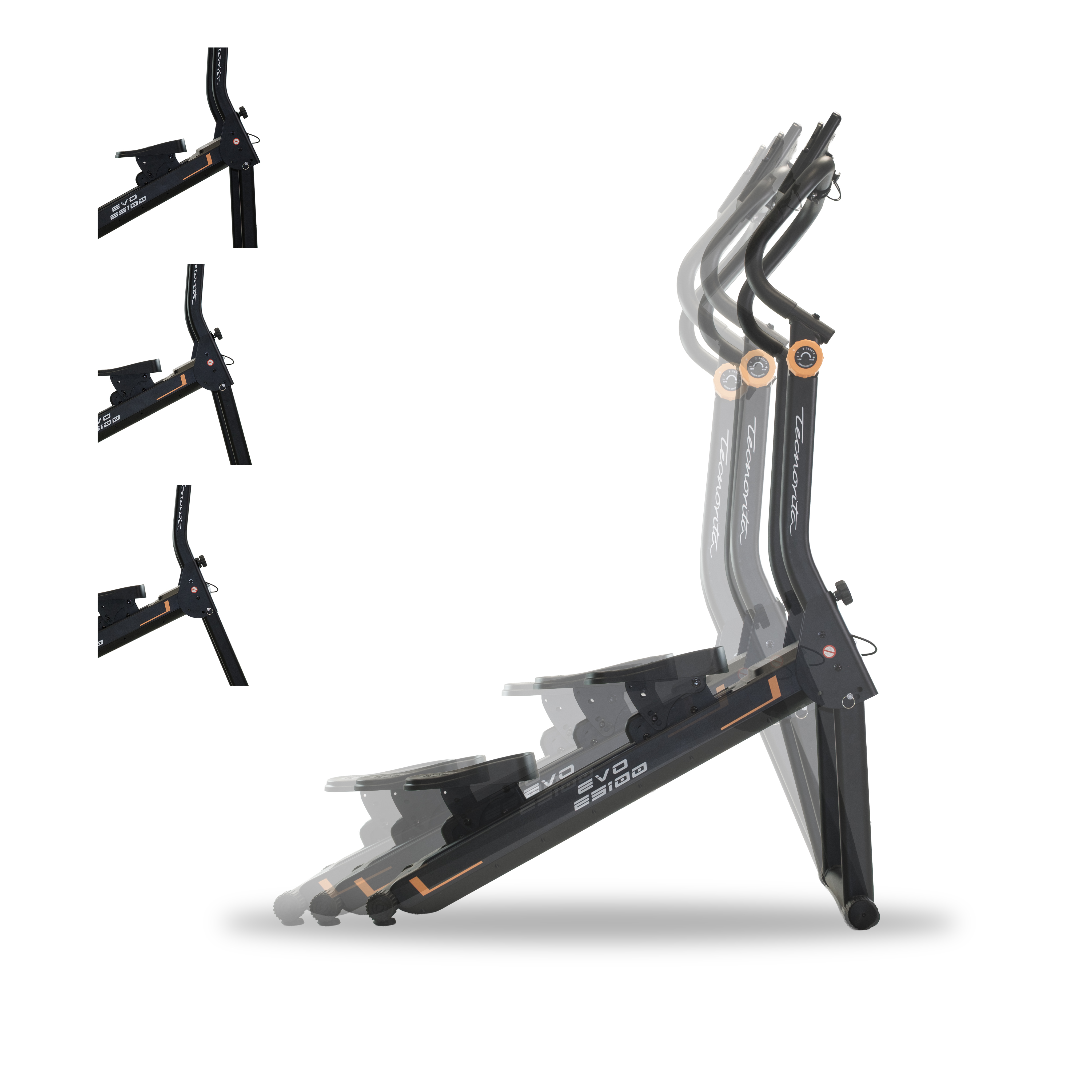 3 posições que se adaptam a diferentes utilizadores e estilos de treino. Passada de 48 cm para um movimento amplo, fluido e confortável.