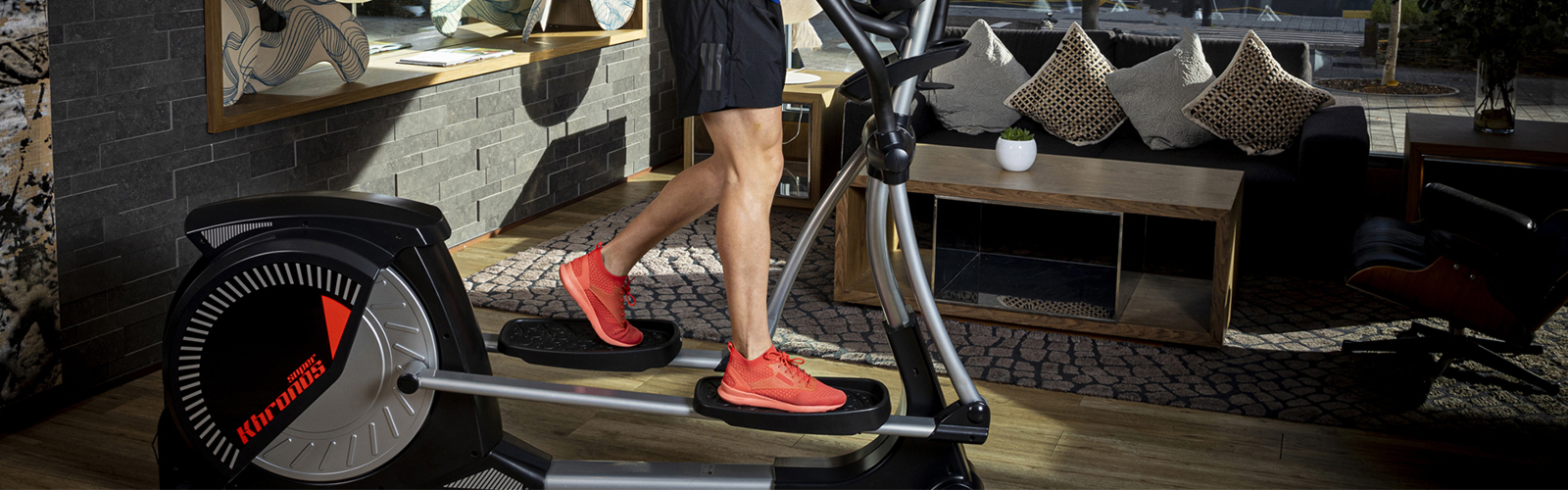 Uso semi-profissional elíptico que permite o treinamento do nível mais alto, graças à sua estrutura sólida, passos amplos, sistema inercial de 35 kg e tecnologia eletrônica avançada.