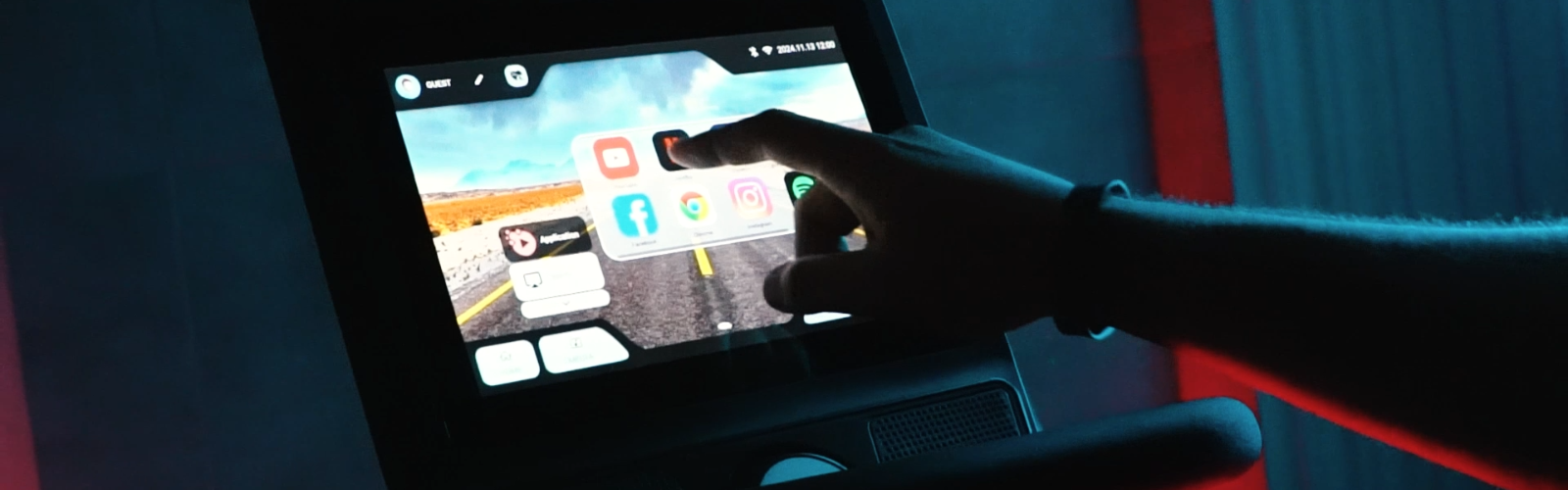 Inclui Bluetooth FTMS para compatibilidade com aplicações como o Zwift ou o Kinomap. Permite visualizar conteúdos multimédia (Internet, Netflix, Spotify...) e ligar auscultadores, cintas peitorais ou Smart Watches.